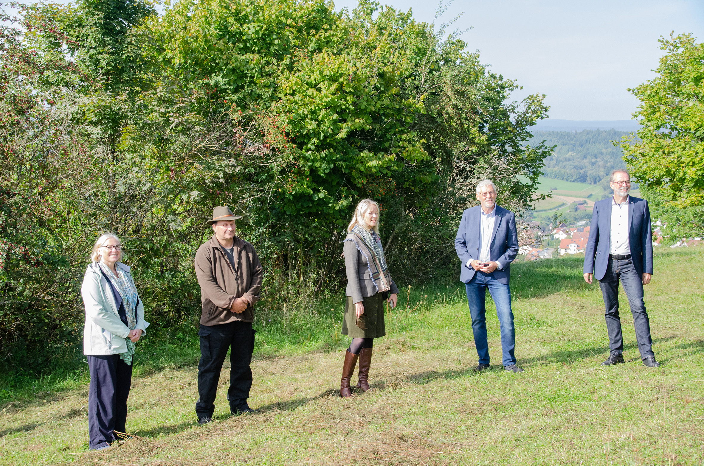 Description: null 30 Jahre Arten- und Biotopschutzprogramm (ASP) Baden-Württemberg: GEMEINSAME PRESSEMITTEILUNG DES MINSTERIUMS FÜR UMWELT, KLIMA UND ENERGIEWIRTSCHAFT BADEN-WÜRTTEMBERG UND DER LUBW LANDESANSTALT FÜR UMWELT BADEN-WÜRTTEMBERG Gültlingen/Karlsruhe/Stuttgart. Anlässlich des 30-jährigen Bestehens des Arten- und Biotopschutzprogramms (ASP) besuchten heute die baden-württembergische Umweltministerin Thekla Walker MdL und Eva Bell, Präsidentin der LUBW Landesanstalt für Umwelt Baden-Württemberg, eines der letzten Vorkommen des Kreuzenzians in Baden-Württemberg auf dem Killberg bei Gültlingen. Die Nahrungspflanze für den Kreuzenzian-Ameisenbläuling, eine Schmetterlingsart, die ebenfalls stark bedroht ist, fördert nicht nur die verbliebenen Populationen, sondern trägt auch zum Erhalt der Biodiversität in Baden-Württemberg bei. Ziel der Landesregierung ist das Stoppen des Artensterbens „Das Arten- und Biotopschutzprogramm dient dem Schutz von hochgradig gefährdeten Arten. Für diese Arten brauchen wir schnelle Lösungen. Das Arten- und Biotopschutzprogramm ist quasi das Feuerwehrprogramm des Artenschutzes im Land - schlagkräftig, umsetzungsschnell und in Umfang und Dauer bundesweit einzigartig“, lobt Umweltministerin Thekla Walker in ihrer Rede die Bedeutung dieses Instrumentes für den Naturschutz. Das Programm sei unverzichtbarer Baustein für das Ziel der Landesregierung, das Artensterben in Baden-Württemberg zu stoppen und stark zurückgegangene sowie in Europa streng geschützte Arten wieder zu stabilisieren. Deshalb werde es auch weitergeführt. „Sie können sicher sein, dass ich mich mit Nachdruck dafür einsetze, die Biologische Vielfalt in unserem Land zu erhalten und zu stärken.“ Weitere Bausteine sind der landesweite Biotopverbund sowie die Umsetzung des europäischen Schutzgebietsnetzes Natura 2000. „In Zeiten von Klimawandel und eines rasant voranschreitenden Insektensterbens, das bereits drastisch an den noch häufigen Allerweltsarten spürbar ist, trifft es die seltenen Arten natürlich noch härter. Wir müssen die Schutzbemühungen weiterführen und intensivieren“, erläutert die Präsidentin der LUBW in ihrer Rede und betont ebenfalls, dass „der Biotopvernetzung eine ganz besondere Bedeutung zukommt.“ LUBW koordiniert das landesweite Schutzprogramm Die LUBW koordiniert das Arten- und Biotopschutzprogramm in Baden-Württemberg. Sie trifft die Auswahl und die Priorisierung der zu berücksichtigenden Arten, beauftragt deren regelmäßige Erfassung und stellt die gewonnenen Daten der landesweiten Naturschutzverwaltung zur Verfügung. Zuständig für die Umsetzung und das Management der Arten- und Biotopschutzmaßnahmen sind die vier Regierungspräsidien in Baden-Württemberg. Die Standorte sind im gesamten Land verteilt, wobei in Gebieten mit besonders vielseitiger und wertvoller Biotopausstattung, wie z. B. Kaiserstuhl, Oberrheinische Tiefebene, Südschwarzwald, Schwäbische Alb, nördliches Tauberland, Hegau und Oberschwaben, naturgemäß starke Konzentrationen auftreten. Seit der Initiierung des „Feuerwehrprogramms“ zur Rettung der letzten Vorkommen einer Art wurden rund 8.600 Erhebungen zu mehr als 1.000 seltenen Arten erfasst und - wo nötig - gezielte Schutzmaßnahmen umgesetzt. Das Artenspektrum wurde im Laufe der Jahre immer stärker erweitert und an die sich ändernde Bedrohungslage einzelner Arten angepasst. Grundlagenwerk mit mehr als 50 Einzelbänden ist bundesweit einzigartig Bundesweit einzigartig und anerkannt sind die in den letzten dreißig Jahren im Zusammenhang mit dem Schutzprogramm erarbeiteten Grundlagenwerke, in denen das Wissen zur Biologie, Ökologie und Verbreitung sowie den Gefährdungsursachen der Arten zusammengefasst ist. Sie bilden das wissenschaftliche Fundament für die konkreten Schutzmaßnahmen. Bis heute sind mehr als 50 Einzelbände zu 13 Artengruppen erschienen. Die Bücher werden von der LUBW in Zusammenarbeit mit den Autorinnen und Autoren sowie mit Unterstützung der Stiftung Naturschutzfonds Baden-Württemberg herausgegeben und erscheinen im Verlag Eugen Ulmer. Weiterführende Informationen sind auf den LUBW-Webseiten zu finden: - Arten- und Biotopschutzprogramm - Feuerwehrprogramme: Erste Hilfe für bedrohte Arten (PDF-Datei) Stiftung-Naturschutzfonds Baden-Württemberg: - Grundlagenwerke zum Artenschutz Foto zeigt: Umweltministerin Thekla Walker MdL auf dem Killberg bei Gültlingen anlässlich des 30-jährigen Bestehens des Arten- und Biotopschutzprogramms Baden-Württemberg. Quelle: LUBW Foto zeigt: Blau blühender Kreuzenzian inmitten eines violetten Thymian-Teppichs auf der Wacholderheide am Killberg bei Wildberg-Gültlingen. Quelle: Heiner Götz Foto zeigt: Trafen sich anlässlich des 30-jährigen Bestehens des baden-württembergischen Arten- und Biotopschutzprogrammes v.l.n.r.: LUBW-Präsidentin Eva Bell, Schäfer Markus Kleinbeck, dessen Tiere die geschützte Fläche des ASP auf dem Killberg pflegen, Umweltministerin Thekla Walker MdL, Landrat Helmut Riegger (Landkreis Calw), Bürgermeister Ulrich Bünger (Wildberg). Quelle: LUBW