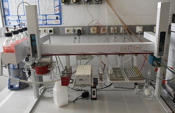 Description: Im Wasserlabor werden vor allem Oberflächen- und Grundwasserproben aus den Messnetzen der LUBW analysiert. Es wird ein breites Spektrum von Parametern untersucht. Die Palette umfasst Basisparameter wie Nährstoffe (Nitrat, Ammonium , Phosphat), eine Reihe von Metallen und Elementen (z. B. Bor, Aluminium, Chrom, Kupfer, Nickel, Blei, usw. ), diverse Summenparameter, Lösungsmittel (z. B. 1,4-Dioxan) , Pflanzenschutzmittel (z. B. Mecoprop), Herbizide (z. B. Glyphosat) oder Arzneimittel (z. B. Diclofenac). Im Bereich der anorganischen Analytik werden ca. 50 Einzelparameter, im Bereich der organischen Analytik ca. 350 Einzelparameter bestimmt. Die gemessenen Konzentrationen reichen bis in den unteren Spurenbereich. Es werden moderne Verfahren und überwiegend automatisierte Analysenmethoden eingesetzt. Neben Wasserproben werden auch Schwebstoffe und Sedimente untersucht. Ein Schwerpunkt im Labor ist die tägliche Untersuchung von Proben der Rheinmessstation Karlsruhe, das sogenannte Rhein-Screening, mit dem Verunreinigungen und Gefahrensituationen frühzeitig erkannt werden. Die Proben werden mit verschiedenen Messverfahren (Gaschromatographie und Flüssigchromatographie) auf eine Reihe von bekannten Substanzen (Target-Screening) als auch auf unbekannte Substanzen (Non-Target-Screening) untersucht.