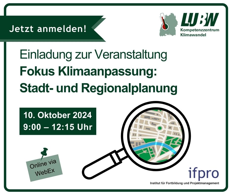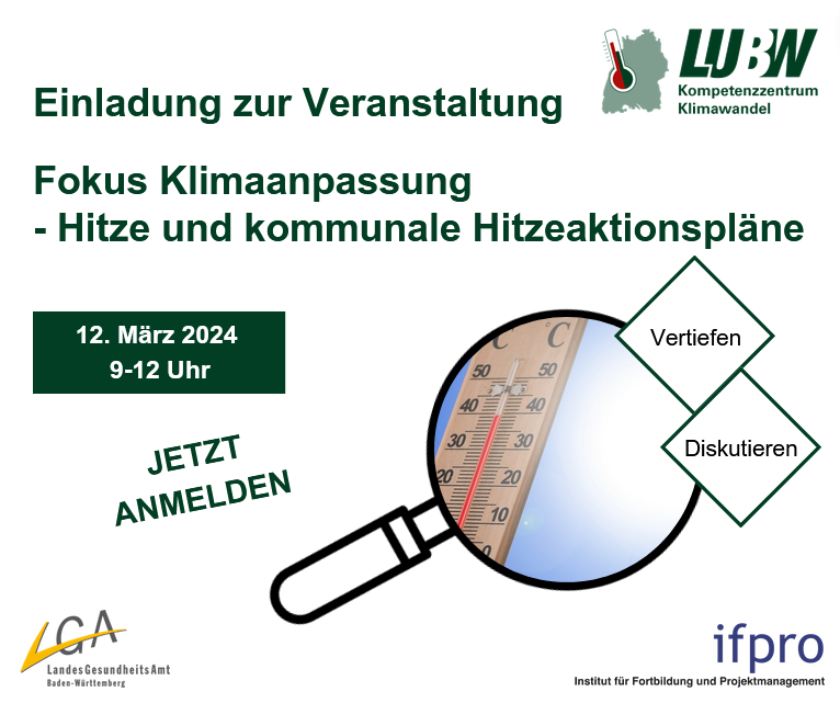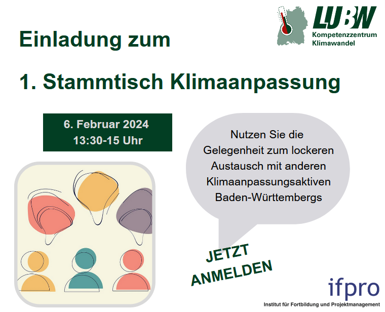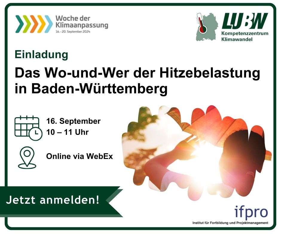 Description: Informationen rund um den Klimawandel, seine Folgen und Anpassung in Baden-Württemberg präsentieren wir Ihnen in verschiedenen Veranstaltungen. Für aktuelle Neuigkeiten und dem Newsletter des Kompetenzzentrums besuchen Sie unseren Angebot auf der Website des Klimaatlas BW . März 2025 Der Klimawandel und seine Auswirkungen stellt Kreise, Städte und Gemeinden vor Herausforderungen. Lösungsansätze gab es am 12.03.2025 bei der "Mittelgebirgskonferenz 2025 – Anpassung an die Folgen des Klimawandels in mittleren und kleinen Kommunen“. Das praxisorientierte Programm legte den Fokus auf: - Forstwirtschaft - Stadtgrün - Landwirtschaft - Schwammstadt Allen Teilnehmenden standen am Ende "Schritt-für-Schritt-Anleitungen" mit den Impulsen und Lösungsansätzen der Veranstaltung zur Verfügung. Januar 2025 Am 23.01.2025 von 9:00 bis 12:00 Uhr fand die Klimaatlas BW - Release Veranstaltung mit über 500 Teilnehmenden statt. Der Klimaatlas BW ist die zentrale Informationsplattform zum Klimawandel für Baden-Württemberg . Er bietet insbesondere Kommunen und Regionen eine Grundlage für den Umgang mit dem Klimawandel vor Ort. Bei der Veranstaltung wurden Inhalte aller Module des Klimaatlas BW gezeigt: Übrigens: Auch die landesweite Klimaanalyse für Baden-Württemberg wurde vorgestellt. In einer Planungshinweiskarte werden Hitze-Hotspots und Kaltluftströme einheitlich für ganz Baden-Württemberg gezeigt. Mehr Infos zu dem Projekt finden Sie auf der Website des Klimaatlas BW . Vielen Dank für Ihre Teilnahme! Oktober Wie können unsere Gemeinden und Städte resilienter gegenüber Klimawandelfolgen wie Hitze oder Starkregen gestaltet werden? Wie kann Klimaanpassung in der Stadtplanung berücksichtigt werden? Am 10. Oktober berichteten Expertinnen und Experten von ganz konkreten Erfahrungen und Erfolgsfaktoren zur Umsetzung. Programm Das Kompetenzzentrum Klimawandel der LUBW stellte das neue FAQ – Klimaanpassung in der Stadt- und Regionalplanung vor, das die Rolle von Anpassungsfragen in der Planung beleuchtet und konkrete Ideen für die Umsetzung liefert. Darüber hinaus gab es erste Einblicke in die landesweite Klimaanalyse, die Hitze-Hotspots und Kaltluftströme in einer Auflösung von 50 x 50 Metern zeigt. Anschließend wurde das Projekt KlimaBB vorgestellt. Dort zeigen individuelle Karten für alle Kommunen im Landkreis Böblingen, welche Bereiche durch den Klimawandel besonders verwundbar sind. Der Begriff „Schwammstadt“ ist in aller Munde. Wie das Konzept in der kommunalen Praxis umgesetzt werden kann, berichtete uns das Zentrum KlimaAnpassung. Wie können Freiflächen für den Hitze- und Hochwasserschutz erhalten werden? Dies wurde am Beispiel des Klima-Layers im Flächennutzungsplan von Esslingen gezeigt. Und wie kann Begrünung und Entsiegelung auf privaten Grundstücken geregelt werden? Von der Stadt Karlsruhe erfuhren wir, wie sie mit dem Bebauungsplan „Grünordnung und Klimaanpassung in der Innenstadt“ neue Wege gehen. Das Beispiel Reutlingen zeigte wie die Entwicklung zur wasserbewussten Stadt gelingen kann. September Unsere Sommer werden immer wärmer, Hitzewellen werden häufiger, länger und treten teils auch schon im Frühjahr auf. Für viele Menschen ist Hitze längst eine enorme Belastung geworden, die auch zu gesundheitlichen Problemen führen kann - Kleinkinder oder Seniorinnen und Senioren sind dabei häufig besonders betroffen. Im Rahmen der Woche der Klimaanpassung präsentierte das Kompetenzzentrum Klimawandel der LUBW die grundlegende Methodik für Betroffenheitsanalysen und zeigte, wie sich das Maß der Betroffenheit in den Kommunen Baden-Württembergs durch klimatische und sozio-demografische Faktoren erklären lässt. Zum Abschluss schauten wir in das Jahr 2040 – und wie sich die Hitze-Betroffenheit unter Annahme von Klima- und Bevölkerungsszenarien in den nächsten gut 15 Jahren verändern wird. Juli 2024 Sei es Hitze oder Hochwasser, die letzten Jahre haben es gezeigt: Klimaanpassung wird immer wichtiger. Nur wie kann der Einstieg gelingen? Am 11. Juli 2024 fand das „Einstiegsforum Klimaanpassung: Wie der Start gelingt“ in Stuttgart statt. Schwerpunkt der Veranstaltung war die Vernetzung und das Lernen von Guten-Praxis Beispielen: Alena Hayer aus der Stadt Singen ließ uns an den Eindrücken aus den ersten 60 Tagen im Job einer Klimaanpassungsmanagerin teilhaben und berichtete von positiven Erfahrungen mit dem Förderprogramm KLIMOPASS. Alena Konrad von der Energieagentur Regio Freiburg gewährte Einblicke in die Erstellung von Klimaanpassungskonzepten in kleinen Kommunen am Beispiel von Bad Säckingen, Ettenheim und Mahlberg. Wie ein Anpassungskonzept auf Landkreisebene aufgestellt und wer dazu alles beteiligt werden kann hörten wir von Dr. Bettina Joa aus dem Landkreis Breisgau-Hochschwarzwald. Aus Pforzheim erfuhren wir von Dr. Sylvia Lorenz wie Öffentlichkeitsarbeit zur Klimaanpassung gelingen kann – mit viel persönlichem Einsatz und praxisnahen Angeboten. Viele Pausen ließen Raum für den Austausch untereinander. Der konnte am Nachmittag im World Café noch vertieft werden. Zusätzlich zu den Referentinnen des Tages standen Dr. Joachim Fallmann und Luisa Keller aus Heidelberg zum Thema Hitzeaktionspläne, Yannis Geiger von der LUBW zum Thema Förderungen, sowie Dr. Wulf Westermann und Carla van der Meyden von ifpro zum Thema Klimaspaziergänge Frage und Antwort. Vielen Dank an alle Teilnehmenden und Referierenden für den gelungenen Tag! März Am 12. März 2024 fand die Vertiefungsveranstaltung Fokus Klimaanpassung: Hitze und kommunale Hitzeaktionspläne statt. Hier finden Sie das Programm der Veranstaltung. Für fortgeschrittene Akteurinnen und Akteure im Themenfeld der Klimaanpassung werden zwei halbtägige Vertiefungsveranstaltungen online durchgeführt. Diese bieten eine Möglichkeit, die Themen Hitze und kommunale Hitzeaktionspläne und klimaangepasste Stadt- und Regionalplanung in Baden-Württemberg zu vertiefen u