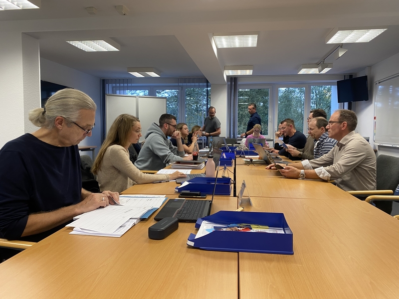 https://www.nlwkn.niedersachsen.de/assets/image/257491 (Bild)Lagebesprechung der Lenkungsgruppe am Standort Norden mit Vertretern vom NLWKN, der Landkreise Aurich und Leer sowie der Stadt Emden in der großen mobilen Führungsstelle des Fachzug Führung und Kommunikation des THW (Foto: NLWKN)