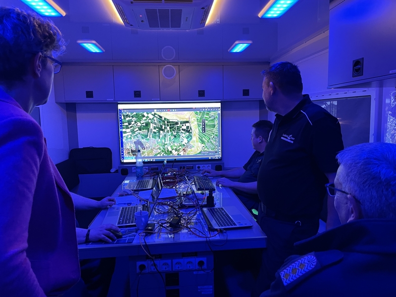 https://www.nlwkn.niedersachsen.de/assets/image/257490 (Bild)Besprechung der Lagekarte in Leer. Bild aus dem Einsatzleitwagen, der Freitag und Samstag im Innenhof der Kreisverwaltung postiert war (Foto: Landkreis Leer).