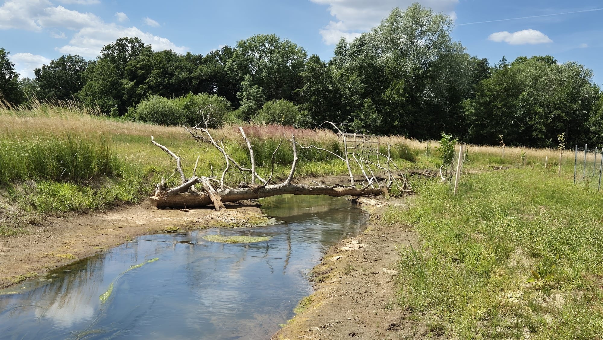 https://www.nlwkn.niedersachsen.de/assets/image/266603 (Bild)Mäandrierende Laufänderung mit großflächiger Einbindung der angrenzenden Flächen und neu angelegten Stillgewässern (Foto: NLWKN, Juli 2025)