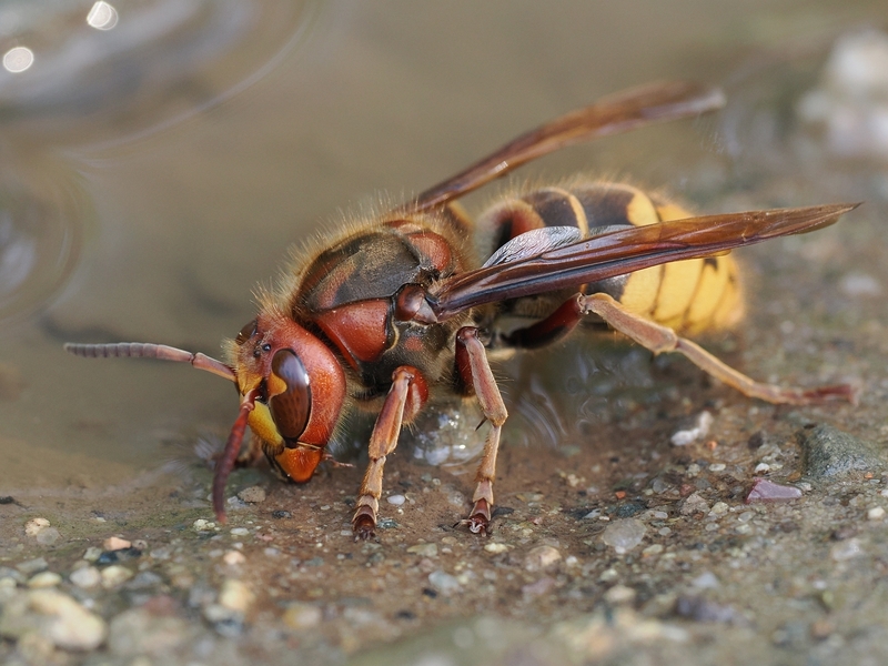 https://www.nlwkn.niedersachsen.de/assets/image/254268 (Bild)Auch die Hornisse (Vespa crabro), hier bei der Wasseraufnahme, gehört zu den besonders geschützten Arten. Wer ihre Nester im Garten findet und diese umsetzen möchte, muss fachliche Hilfe einholen (Bild: Jakob Fahr).