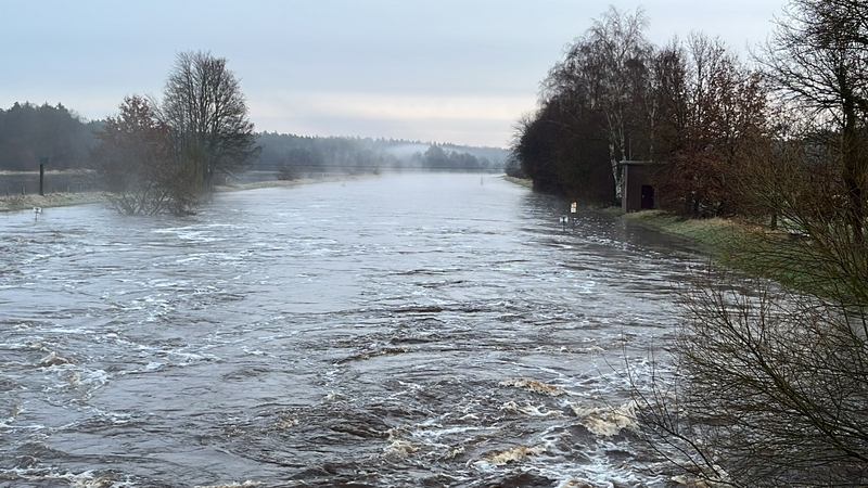 Die Große Aue während des Winterhochwasser 2023/2024 am Pegel Steyerberg (Foto: NLWKN)