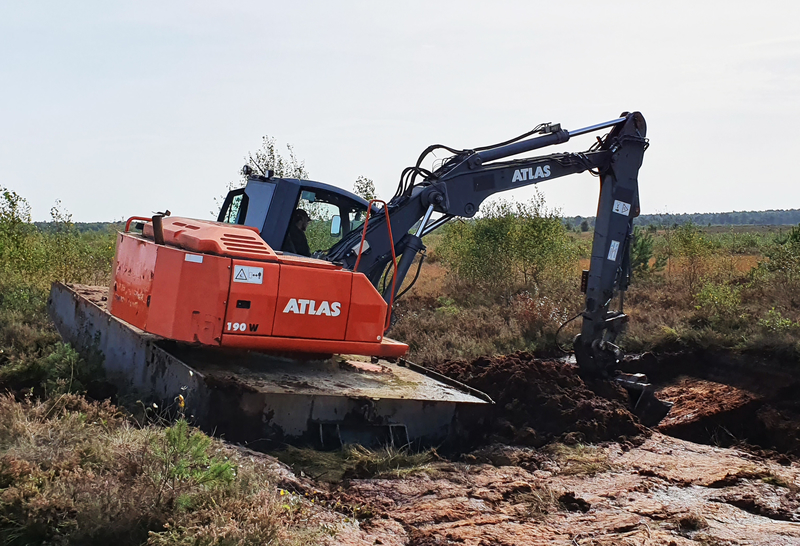 https://www.nlwkn.niedersachsen.de/assets/image/249690 (Bild)Versinken unmöglich: Mit einem Pontonbagger waren die Baggerarbeiten im Bissendorfer Moor auch auf nassem Standort durchführbar (Foto: Susanne Brosch, NLWKN).