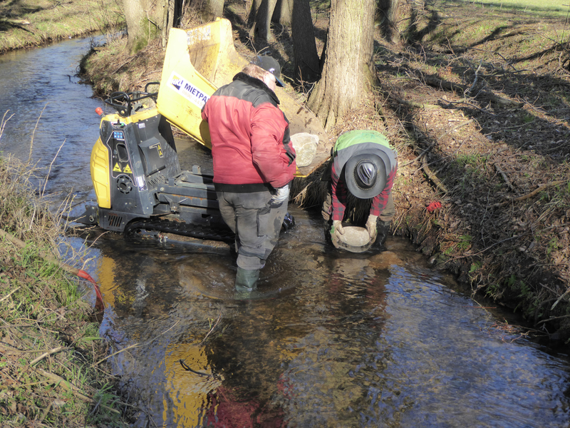 Die neuen großen Feldsteine im Schnegaer Mühlenbach erhöhen die Struktur- und Strömungsvielfalt im Gewässer.