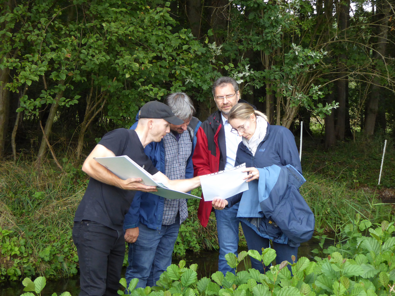 https://www.nlwkn.niedersachsen.de/assets/image/228066 (Bild)Vom Plan zur Umsetzung (v.l.): Philipp Stoedter (NLWKN), Timm Kabus (Landkreis Lüchow-Dannenberg), Danny Wolff (NLWKN) und Lena Jaernecke (Landkreis) begutachten das Ergebnis des zweijährigen Projektes am Dullborn (Bild: NLWKN).