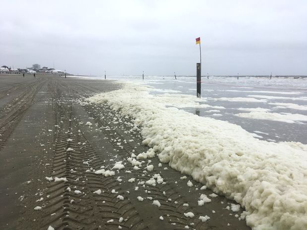 Description: Gelb-Braun statt Ozeanblau: ein natürlicher „Schaumschläger“ sorgt derzeit wieder verstärkt für ungewohnte Bilder an Niedersachsens Stränden. Die seit einigen Wochen in den Küstengewässern zu beobachtende Verfärbung des Wassers und die beginnende Schaumbildung ist auf eine Blüte der sogenannten Schaumalge Phaeocystis globosa zurückzuführen. Ihre Häufigkeit, Dauer und Intensität haben in den letzten Jahrzehnten zugenommen, heißt es beim Niedersächsischen Landesbetrieb für Wasserwirtschaft, Küsten- und Naturschutz (NLWKN). Der NLWKN ist für die biologische Kontrolle der Gewässer in Niedersachsen zuständig und betreibt hierzu ein breites Netz aus Messstellen und Probenahmestationen. „Die derzeit in hohen Dichten auftretende Schaumalge ist eine planktische Algenart. Sie fand in den letzten Wochen bei ruhigen Wetterbedingungen mit intensiver Sonneneinstrahlung optimale Wachstumsbedingungen vor“, erklärt Dr. Marc Herlyn von der NLWKN-Betriebsstelle Brake-Oldenburg. Die Folge: eine Massenvermehrung, die von den Experten als Algenblüte bezeichnet wird. Dass hierbei derzeit durchaus außergewöhnliche Ausmaße erreicht werden, zeigen aktuelle Messergebnisse der NLWKN-Probenahmestation auf der Nordseeinsel Norderney. Von der biologischen Arbeitsgruppe des Landesbetriebes wurden hier jüngst über 19.500 Kolonien der Alge pro Liter Seewasser gemessen. „Eine Konzentration in dieser Größenordnung wurde letztmals 2010 erreicht und seit Beginn der regelmäßigen Untersuchungen im Jahr 1985 lediglich neunmal überschritten“, so Herlyn. Eine Entwicklung, die Strandspaziergängern nicht nur ins Auge fallen dürfte: kann doch neben der Trübung und Verfärbung des Seewassers ein unangenehmer Geruch auftreten, da die Schaumalge eine flüchtige, organische Schwefelverbindung an ihre Umwelt abgibt. Die Kolonien der Schaumalge bilden eine kugelförmige, eiweiß- und kohlenhydratreiche Hülle, die oft schon mit bloßem Auge gut erkennbar ist. Im Bereich der südlichen Nordsee erreicht die Alge im Zeitraum von April bis Mai ihre maximale Dichte. Der Verbrauch der im Wasser enthaltenen Nährstoffe führt auf dem Höhepunkt zu einem Zusammenbruch einer derartigen Algenblüte, der mit der Auflösung der Koloniehüllen einhergeht. Komme es in dieser Phase zu stärkeren auflandigen Winden, könne insbesondere an den Inselstränden eine auffällige Schaumansammlung entstehen, erklärt der NLWKN-Experte. Dabei handelt es sich um kein neues Phänomen: Das Auftreten von Phaeocystis-Blüten in der Nordsee ist bereits für das Ende des 19. Jahrhunderts dokumentiert. „Häufigkeit, Dauer und Intensität der Blüten haben aber während der letzten Jahrzehnte zugenommen“, betont Herlyn. So wurden im Rahmen der Überwachung der niedersächsischen Küstengewässer an einer bei Norderney gelegenen Messstation 1993 Höchstwerte von bis zu 100.000 Kolonien pro Liter Seewasser gemessen. Danach erfolgte ein Rückgang der Spitzenwerte von 1997 bis 2003, während von 2004 bis 2013 fünfmal Jahresspitzen zwischen 15.000 und 36.000 Kolonien pro Liter erreicht wurden. Im Zeitraum von 2014 bis 2017 wurde ein Wert von 9.000 Kolonien pro Liter nicht überschritten. Die Ursache für das vermehrte Auftreten von Algenblüten liegt nach Auskunft des NLWKN im Zusammenwirken von dafür günstigen Witterungsverhältnissen und vom Menschen verursachten erhöhten Nährstoffeinträgen in die niedersächsischen Übergangs- und Küstengewässer.