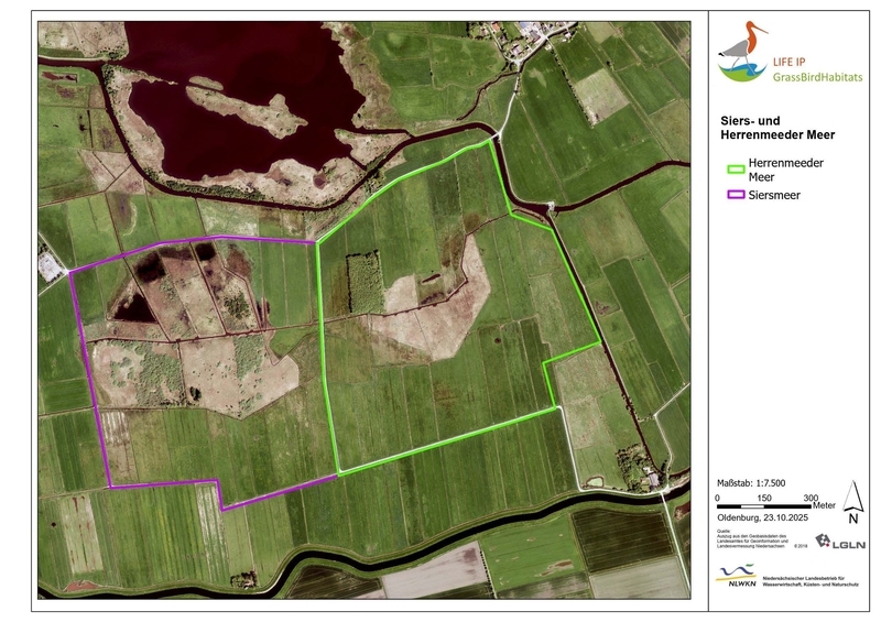 https://www.nlwkn.niedersachsen.de/assets/image/269218 (Bild)Die insgesamt 146 Hektar große Projektfläche im Bereich des Siers- und Herrenmeeder Meeres im Überblick (Karte: NLWKN/LGLN).